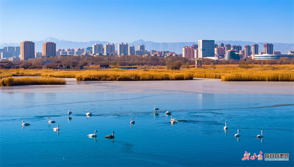 原标题:【镜观陇原】金苇摇曳天鹅成群 张掖湿地绘就冬日生态图