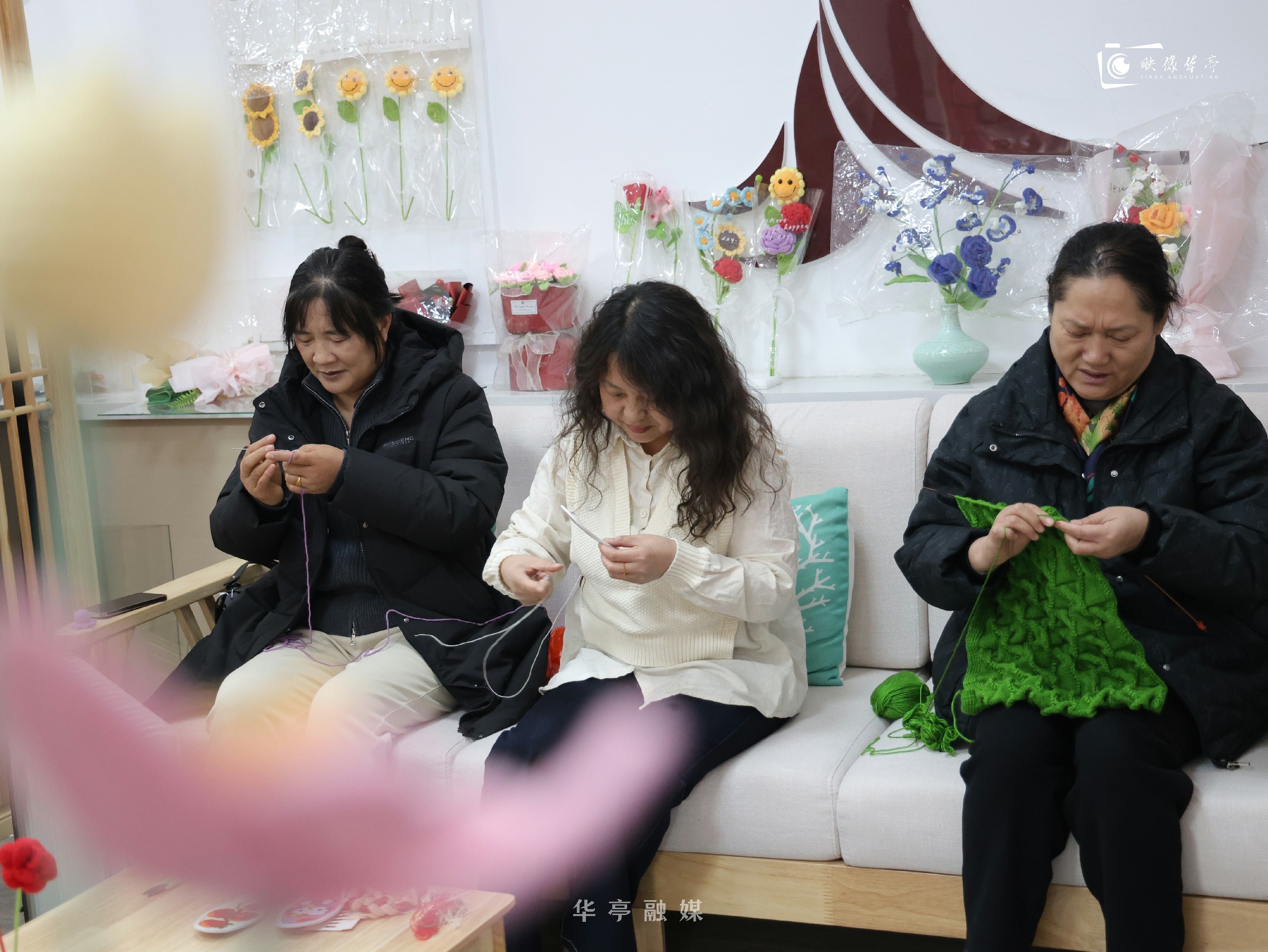 钩针在指尖轻盈跳跃,彩线如溪流般缓缓编织。社区里,几位老姐妹常聚在一起,她们不说话时,只听见毛线摩擦的沙沙声;说起话来,笑声便和编织的花样一样绵密。憨态可掬的小动物、绽放在指尖的四季花卉,还有为家增添温暖的各式毯品……这些由手心温度焐热的物件,从不标价,却成了邻里间最暖的礼物,把寻常日子,一针一线钩成了诗。