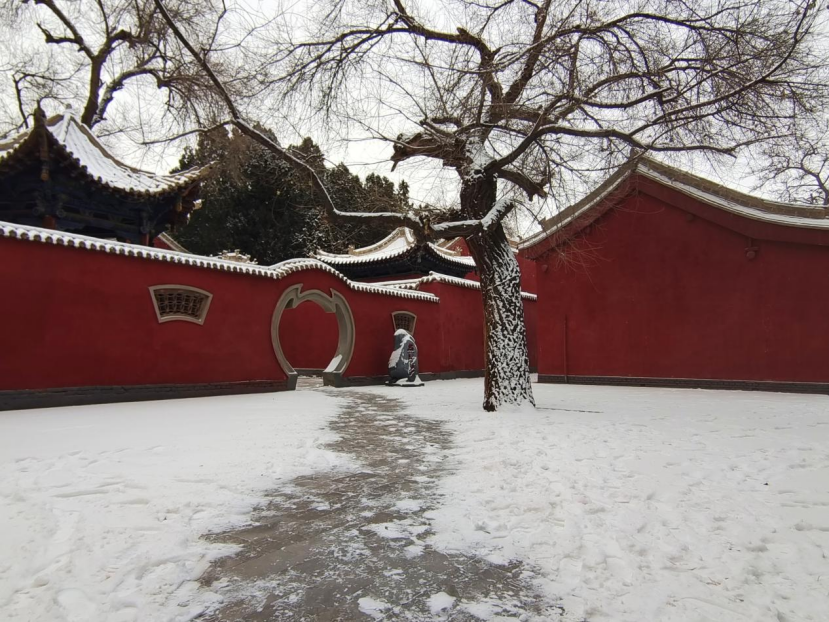 我拱手,向雪地上的的先师雕像作别。雪覆眉发,我亦成一尊行走的小小碑刻。把今日之白,藏进心底之黑;把千年之重的文脉,化作一步之遥的体温。从此,无论走到哪里,只要抬头望雪,我就会回到武威——回到这座雪中的文庙,回到河西走廊最安静、也最炽热的心脏。