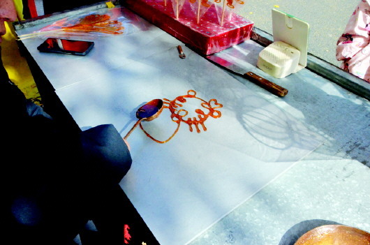 “孩子们的想象力特别丰富,有时候他们会提出一些新奇的想法,比如画奥特曼、小猪佩奇。”张治文笑着说,“时间有限,我虽不能个个满足,但凡时间充足我也会顺着他们的思路,把这些现代元素融入糖画中,让他们觉得,传统手艺也可以很时尚”。