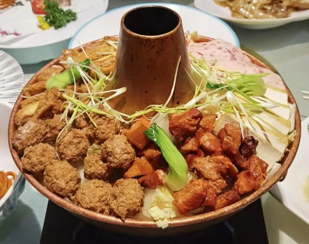 平凉人是有口福的。一下雪,暖锅子、涮锅子便成了理所当然的约定。庄浪暖锅已在桌上咕嘟作响,黄铜锅中心炭火徐徐,周边层层叠叠码着卤肉、豆腐、丸子、粉条与山野干菜,在浓汤里慢煨,各味交融,炖出一锅扎实的醇厚。