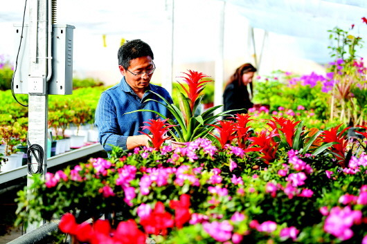 棚外寒风阵阵,棚内花开正艳。12月8日,走进位于清水县现代农业产业园里的幸福家花卉园艺大棚,五彩斑斓的鲜花盆景竞相绽放,让人仿佛置身于春意盎然的画卷之中。该花圃占地面积2000多平方米,共有大小盆栽5万多盆、800多个品种,常年繁殖并供应各种时令花草以及专为花海景观培育的花卉,吸引周边的众多市民和客商前来观赏、采购。
