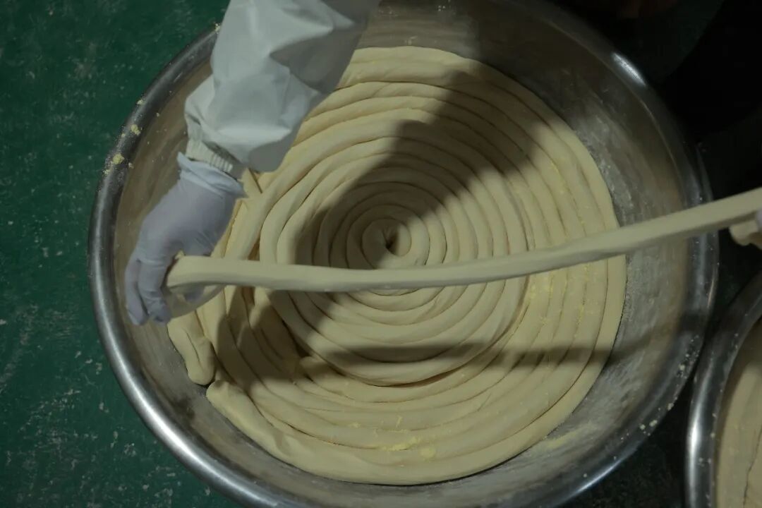 从凌晨到正午时分,匠人需要连续工作几个小时,每一个环节都马虎不得。面团的软硬、醒发的程度、拉抻的力道,全凭师傅们手上功夫来把握。