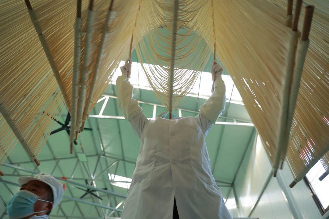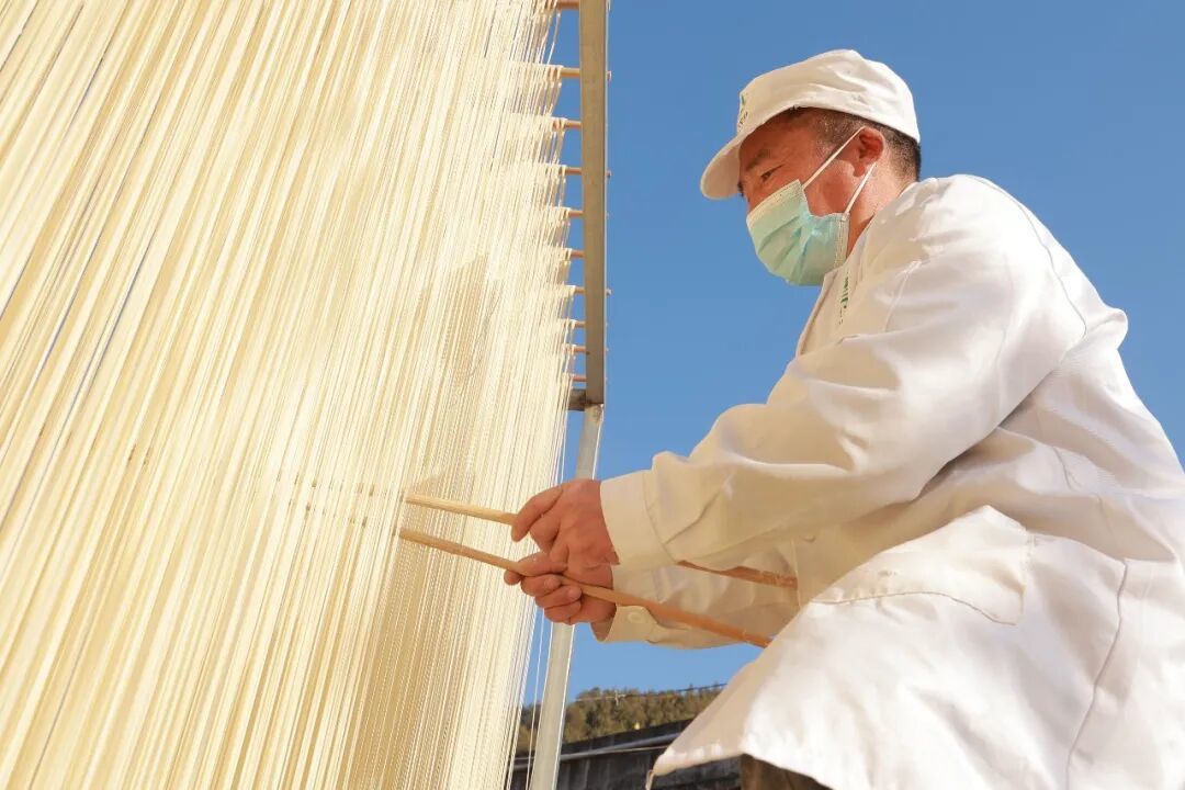 一排排整齐悬挂的挂面随风轻摆,宛如银色的帘幕,既是乡村冬日里独有的颜值担当,更见证着乡村就业工厂的红火发展,为当地村民提供了稳定的就业岗位,让“小挂面”撑起了乡村振兴的“大民生”。