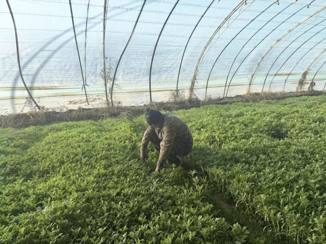 走进银达镇六分村温室大棚,掀开厚重的保温帘,清新芹香扑鼻而来,一畦畦芹菜茎秆挺拔,叶片鲜亮油绿,在透入的日光中舒展着鲜活生机。种植户张德全穿梭其中,时而俯身除草,时而凝神查看,虽然是第一年试种芹菜,但他却信心十足。