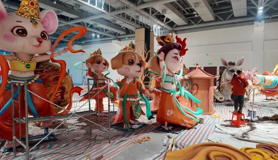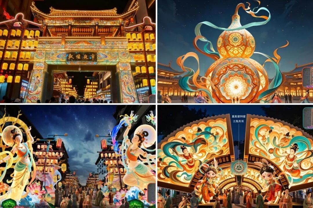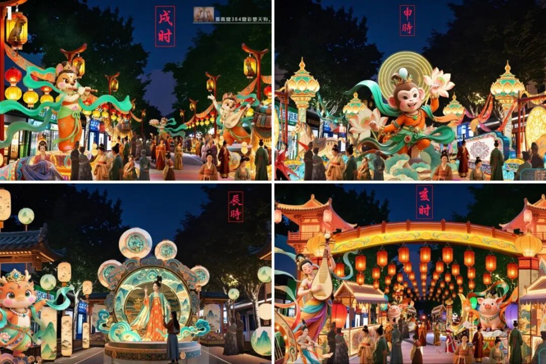敦煌灯会融合“文化+科技+互动”的形式,深挖敦煌文化内核,融合现代光影科技,让千年丝路文明在灯火中焕发新生。目前,部分灯组制作已现雏形,精美造型渐显真容。记者了解到,敦煌灯会有两大沉浸式主题区域。“画壁霓彩·纹话敦煌”以光为笔,让葡萄纹发芽、兔子纹幻化为“三兔共耳”,呈现纹样的生命流转;“天街灯市·敦煌十二辰彩”则以敦煌壁画为蓝本,结合十二生肖打造专属场景。游客化身“画中人”参与探险,可触发祥兽互动,感受文化交融乐趣。