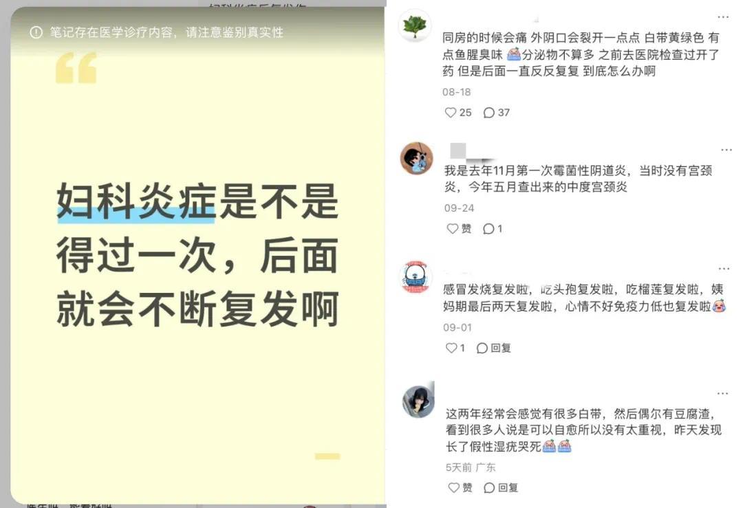 看到很多女性在社交平台上发贴,妇科炎症总是反复发作:私处瘙痒、灼热、有异味、白带异常,甚至出现尿频尿急……