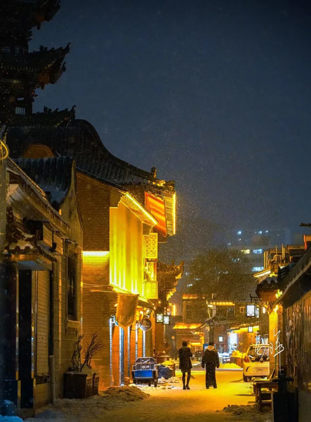 那些平日里熟悉的街景在雪的装点下,都蒙上了一层朦胧的诗意。时光仿佛在这里慢了下来,甚至倒流回某个遥远的朝代,让人恍惚间不知今夕何夕。