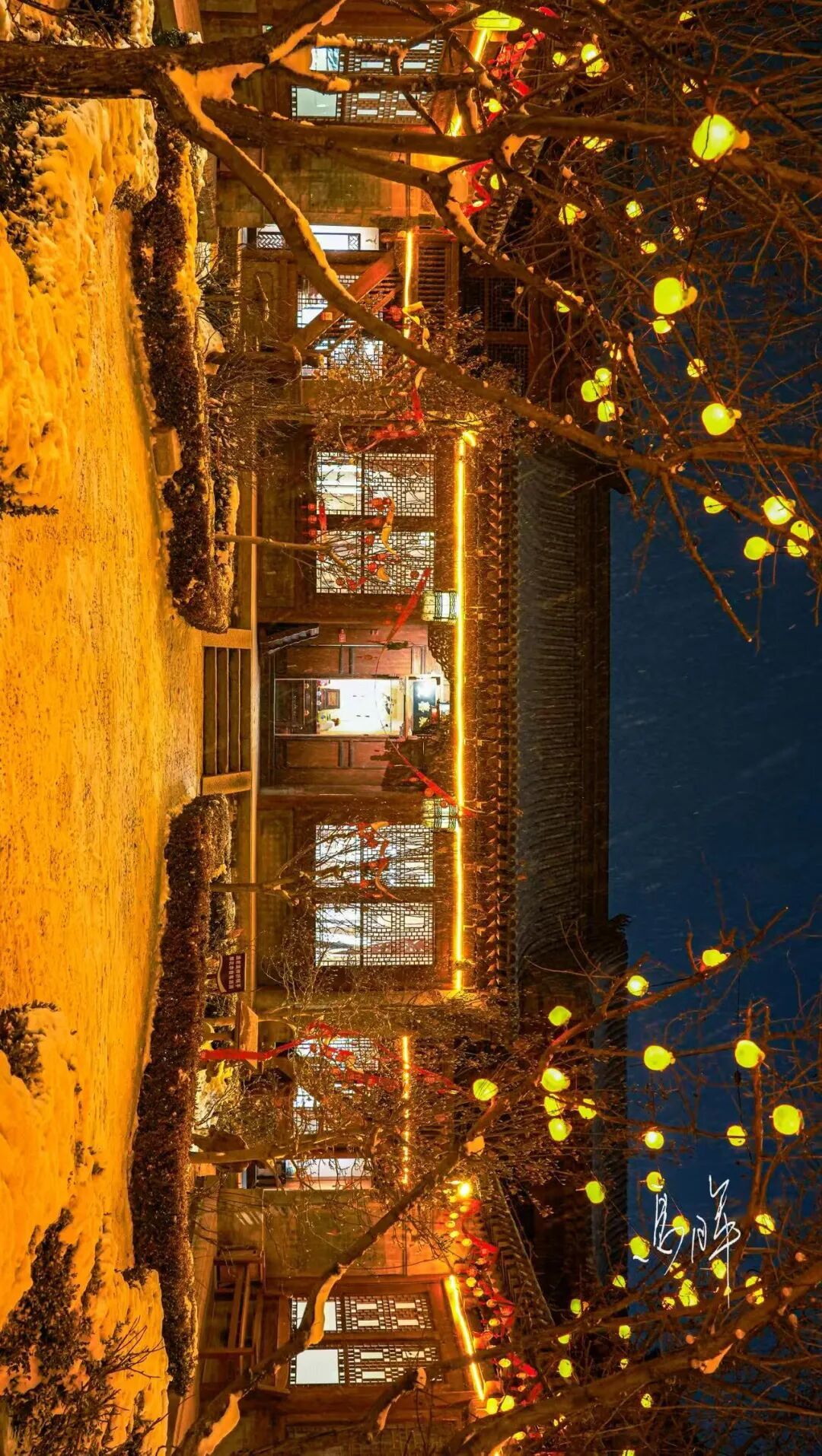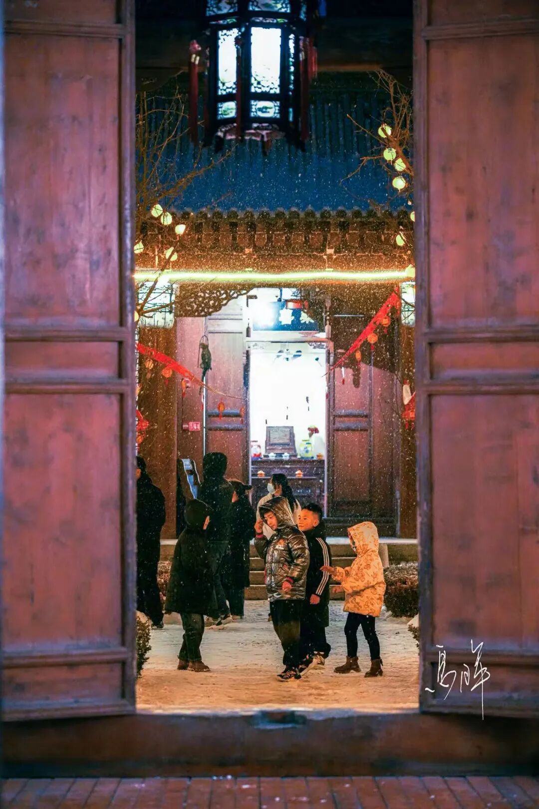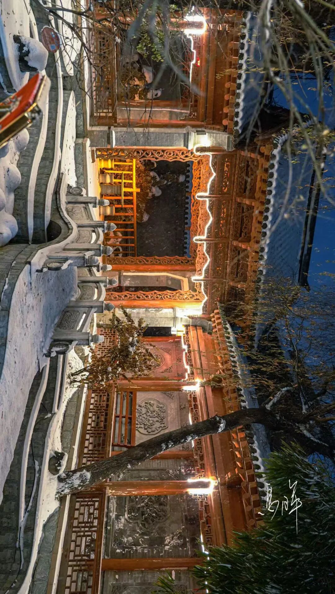 走在青石板上,脚下发出“咯吱咯吱”的轻响,这是冬天独有的韵律。抬眼望去,雪花还在纷飞,像是从天上撒下的碎玉,又像是无数只白色的蝴蝶,在古城的街巷间翩翩起舞。