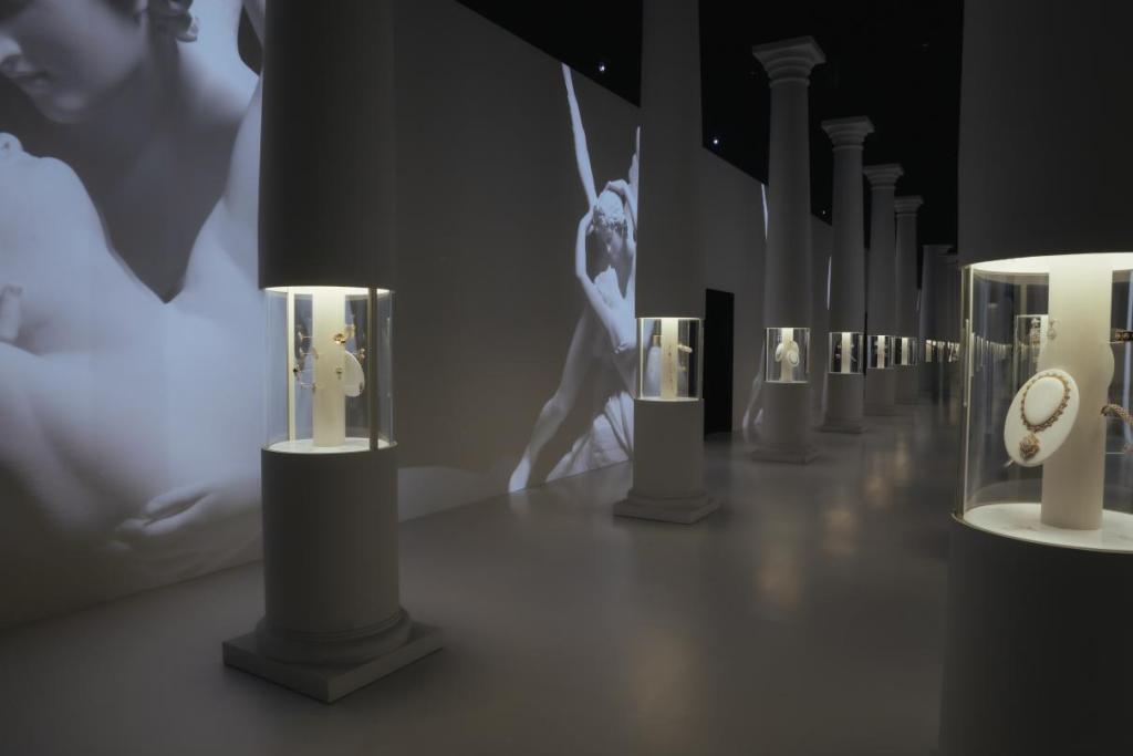 此次展览精心构筑4大展厅和沉浸式廊道,巧妙运用柱廊、对称结构、和谐比例等经典风格元素,结合多媒体视觉语言,呈现250件作品,其中包括58件从未公开的臻作与8件独一无二的高级珠宝,构建起一段跨越世纪的匠心之旅。