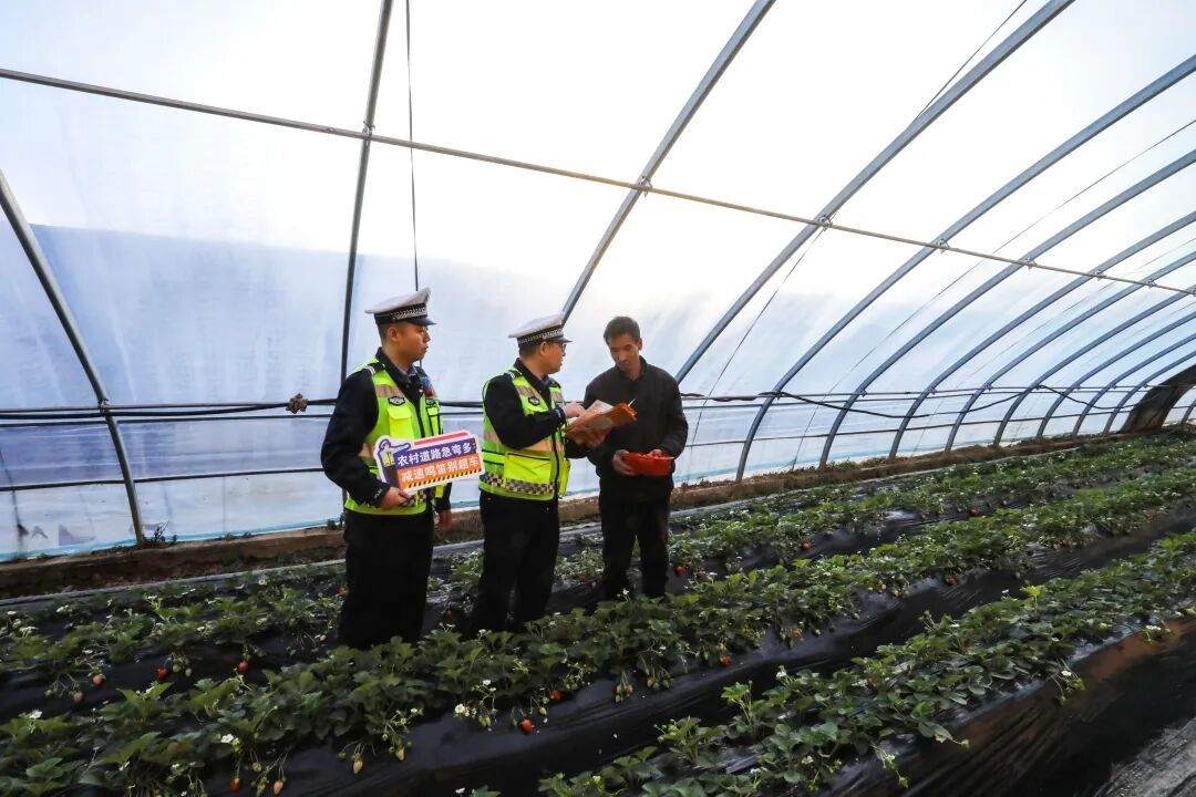 宣传期间,民警还结合当地道路实际情况,对群众关心的交通安全问题进行现场答疑。“平时忙着摘草莓卖草莓,确实容易忽略交通安全细节,这样的上门宣传很及时、很实用!”一位草莓种植户在听取讲解后表示。