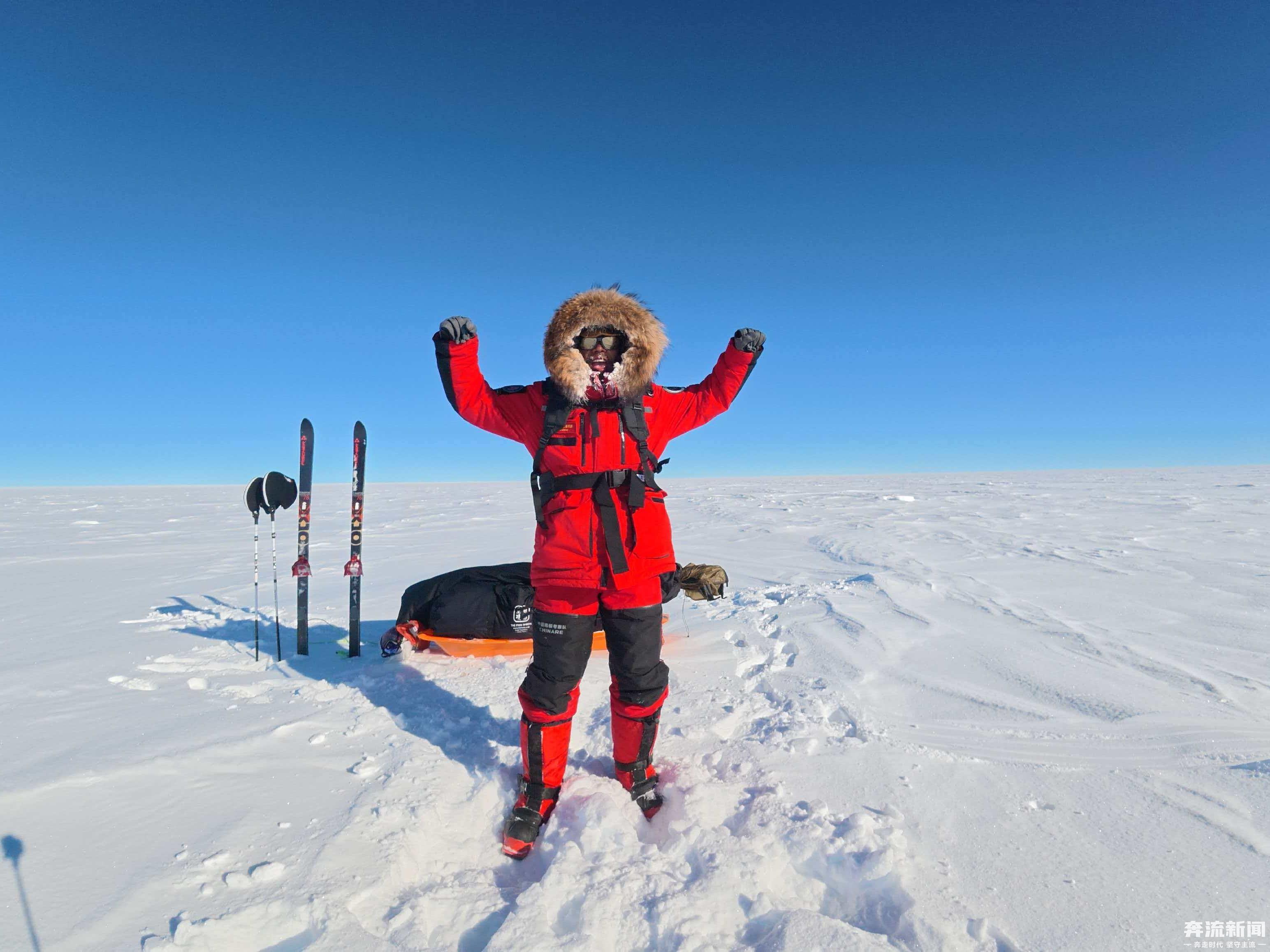 奔流新闻讯(首席记者 张鹏翔)智利时间12月14日21时20分,中国甘肃探险家汗斯在完成约118公里越野滑雪后,成功抵达地理南极点,圆满完成登顶南极最高峰文森峰与南极点徒步两项极限挑战。