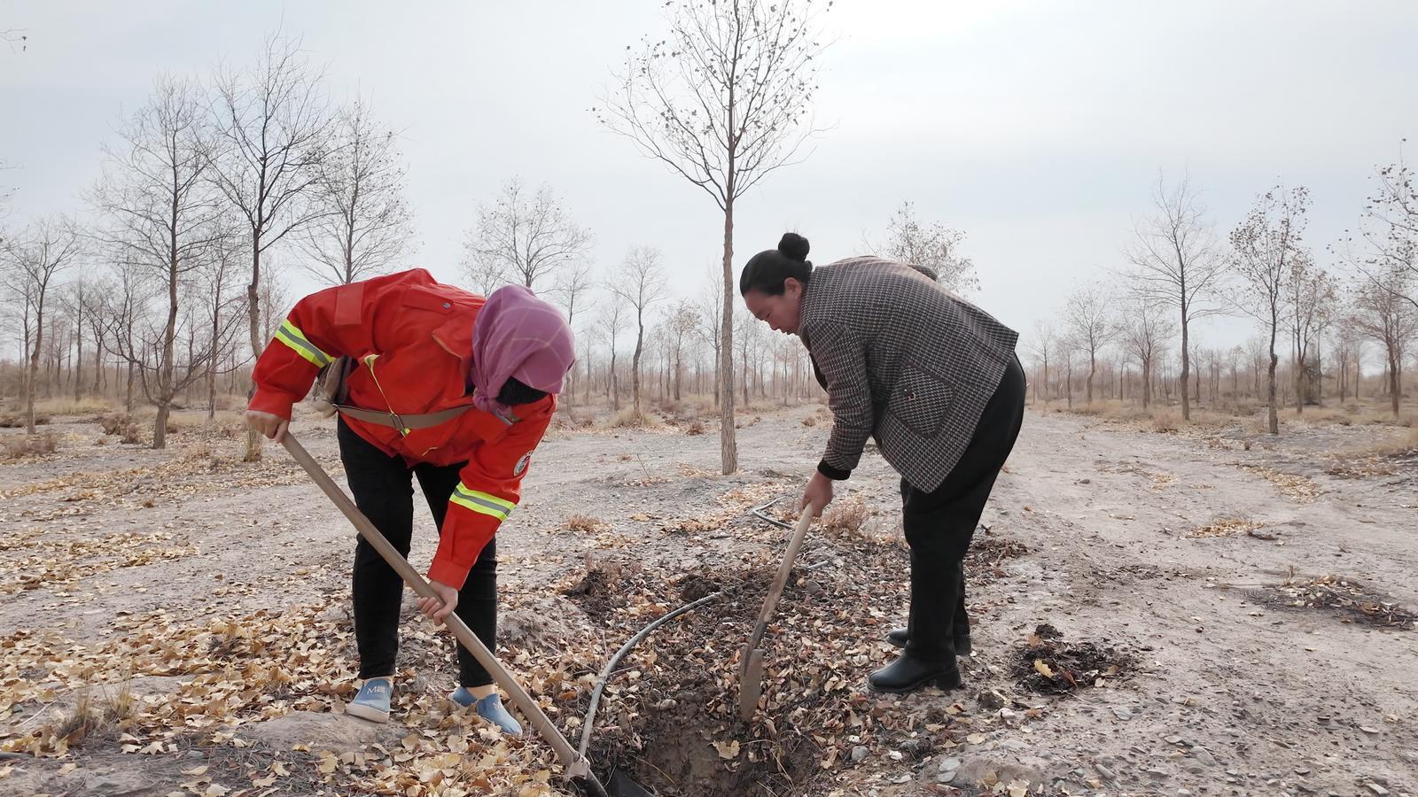 在金塔,生态治理既要“增绿覆绿”,更要“护绿管绿”。每天早上,城西防护林护林员米莲花便与搭档踏上日常巡查之路。“眼下重点做好排水工作,生怕低温冻坏灌溉管道。这里的一草一木都是我的‘责任田’,容不得半点马虎。”米莲花亲眼见证了金塔从荒漠戈壁到绿意盎然的蜕变,亲历了沙退人进的艰辛历程,对这片土地上的绿色有着格外深厚的感情。