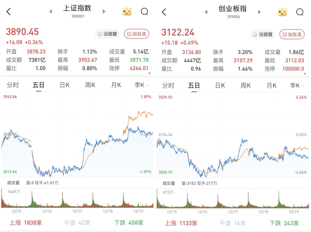 至收盘,上证综指涨0.36%,报3890.45点;科创50指数涨0.2%,报1308.59点;深证成指涨0.66%,报13140.21点;创业板指涨0.49%,报3122.24点。