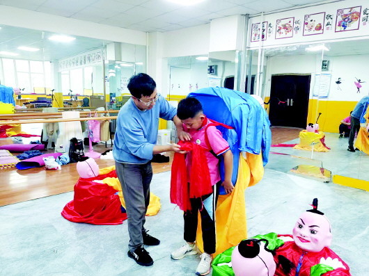 创新是驱动艺术发展的不朽动力,在不断的演出实践中,缑红斌因势利导,踊跃创新。他将传统的、沉重的木凳换成轻质铝合金,用布包裹木人身体,以提升表演的灵活性。在服装设计上,摒弃了经典的蒙古大汉形象,与现代元素融合,创新推出男童女童造型,其色彩搭配更鲜明、图案设计更具视觉冲击力。在演出场景上,从传统的地面社火表演拓展到了舞台方桌,表演形式改编为舞台剧式杂技表演,既增强了视觉层次,也激发了艺术观赏性。在甘肃省非物质文化遗产体育类展示大会上,这一创新获得了“最佳服装奖”。在音乐的设计上,更是巧妙融合了戏曲音乐与现代音乐元素,提升表演节奏、韵律,让传统鼓乐与现代音乐同频共振,增强了感染力与传播力。今年以来,缑红斌还推出了双人表演套路《木跤双绝》,由两代传承人共同携手演绎,这一创新由于强化了表演叙事,首次公开演出就受到了广泛好评。