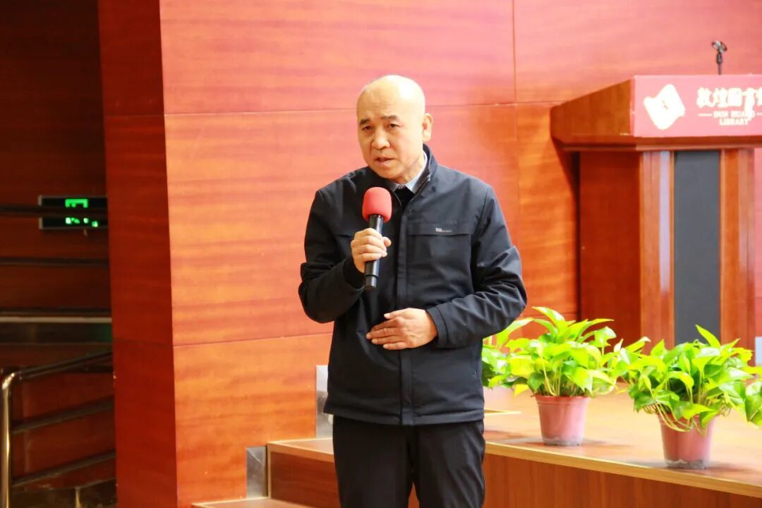 讲座伊始,著名诗人、甘肃省作协副主席古马发表致辞。他表示,敦煌作为古丝绸之路枢纽重镇,承载千年文明积淀,诗歌是敦煌文化中璀璨的明珠,串联起历史与当下,本次“敦煌文化百家讲坛”为大家搭建了共赴诗歌与历史约会的平台,感谢各主办、承办单位的精心筹备,盛赞霍俊明先生兼具深厚学术造诣与鲜活创作实践,期待其解读能为大家带来思想启迪与精神滋养。