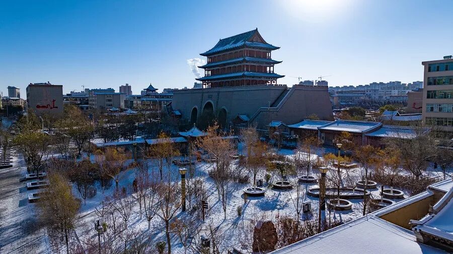 此时的凉州,天色澄明。阳光如温酒,漫过安静的街巷。城市轮廓在晴空下格外清晰——屋宇层叠,檐角静立,像一位沉静的守望者,正积蓄着一场冬日的梦。