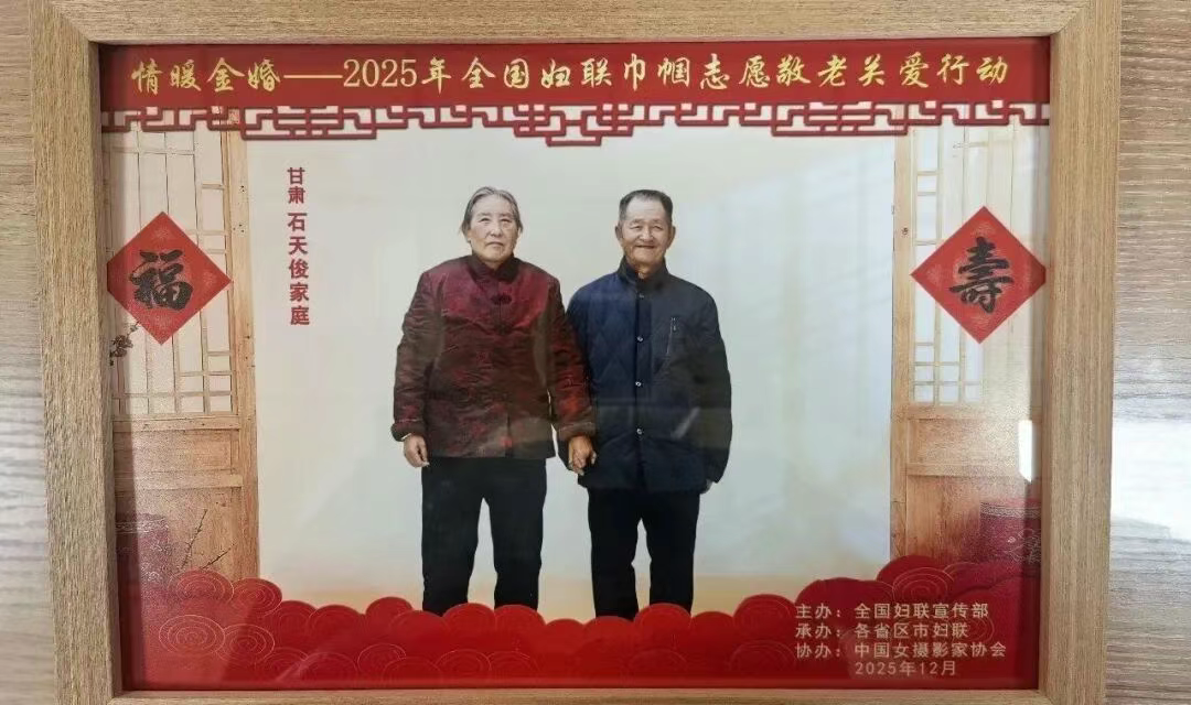 近日,甘肃省妇联深入贯彻全国妇联关于深化巾帼志愿服务的部署要求,聚焦弘扬中华民族尊老、敬老、爱老的传统美德,联动全省11个县区,创新开展“情暖金婚”巾帼志愿敬老关爱行动。通过免费拍摄金婚全家福、记录家风故事等特色服务,为50对携手跨越半个世纪的金婚夫妇送上一份特殊礼物,用镜头定格岁月温情,留存美好时光。