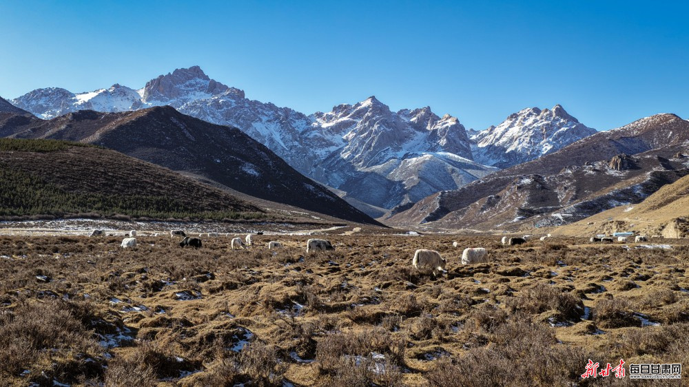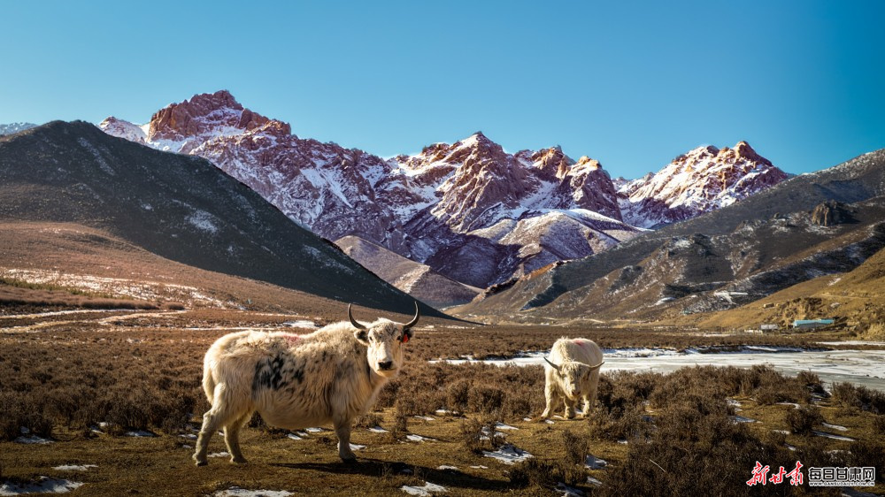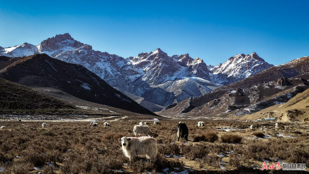 原标题:【镜观陇原】马牙山下牦牛欢 天祝高原冬日美