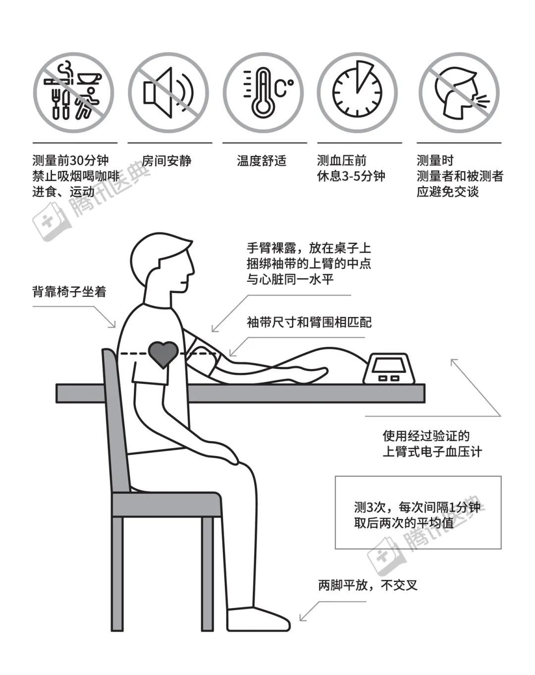 2021年,欧洲高血压学会(ESH)发布了测血压测量的实践指南,自己在家里测血压,按照这个图,更加准确和方便[2]。
