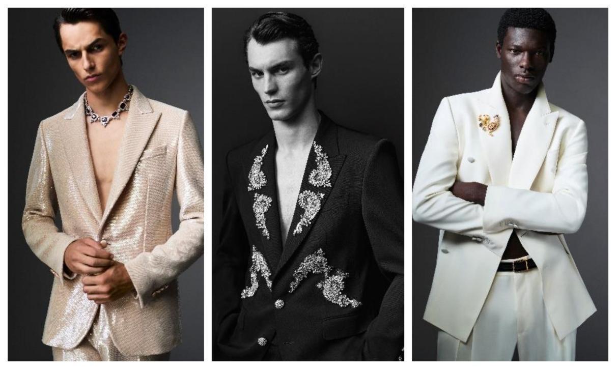 男装系列以1930年代银幕形象为灵感,核心为精裁西装,复古花卉、几何图案与珠饰刺绣点缀其间,青果领、真丝腰带彰显精裁韵味,面料甄选天鹅绒、真丝西装料,配饰方面Vittoria系列(超大方正与迷你翻转提手款)与Marlene系列(新颖配色)焕新亮相。