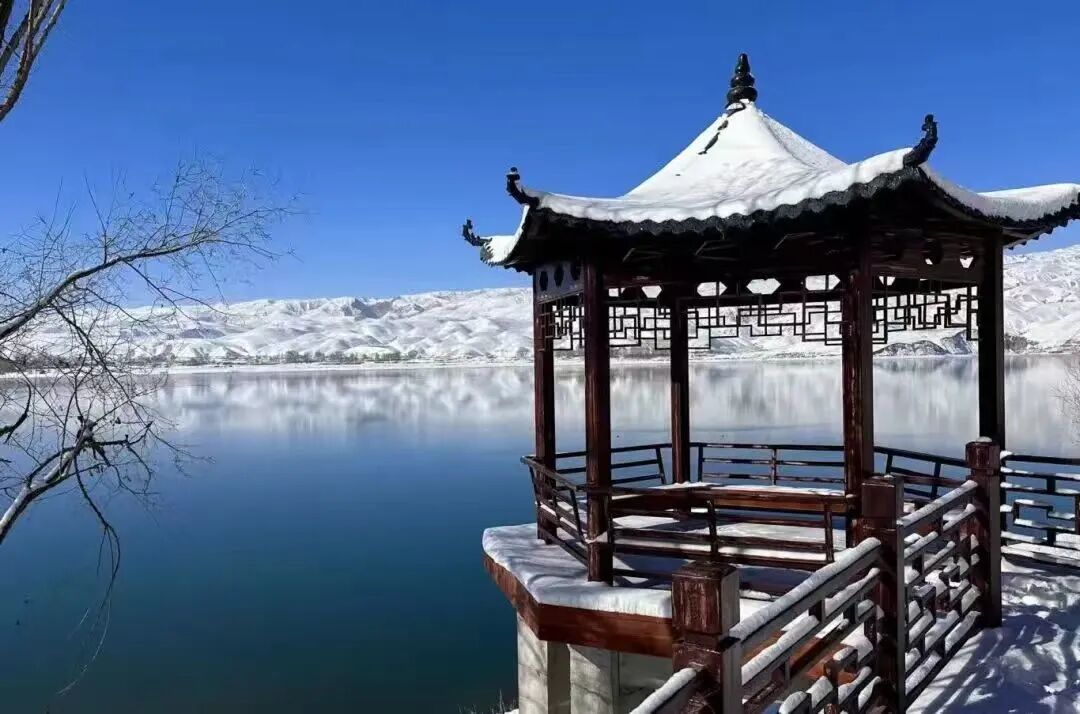 大雪后的天马湖,是武威最温柔的角落。湖面结了一层薄冰,像一块洁白的宣纸,岸边的柳树垂着雪绒花。沿着湖边的木栈道漫步,脚下的积雪发出轻微的声响,远处的高楼映在雪地里,多了几分静谧。