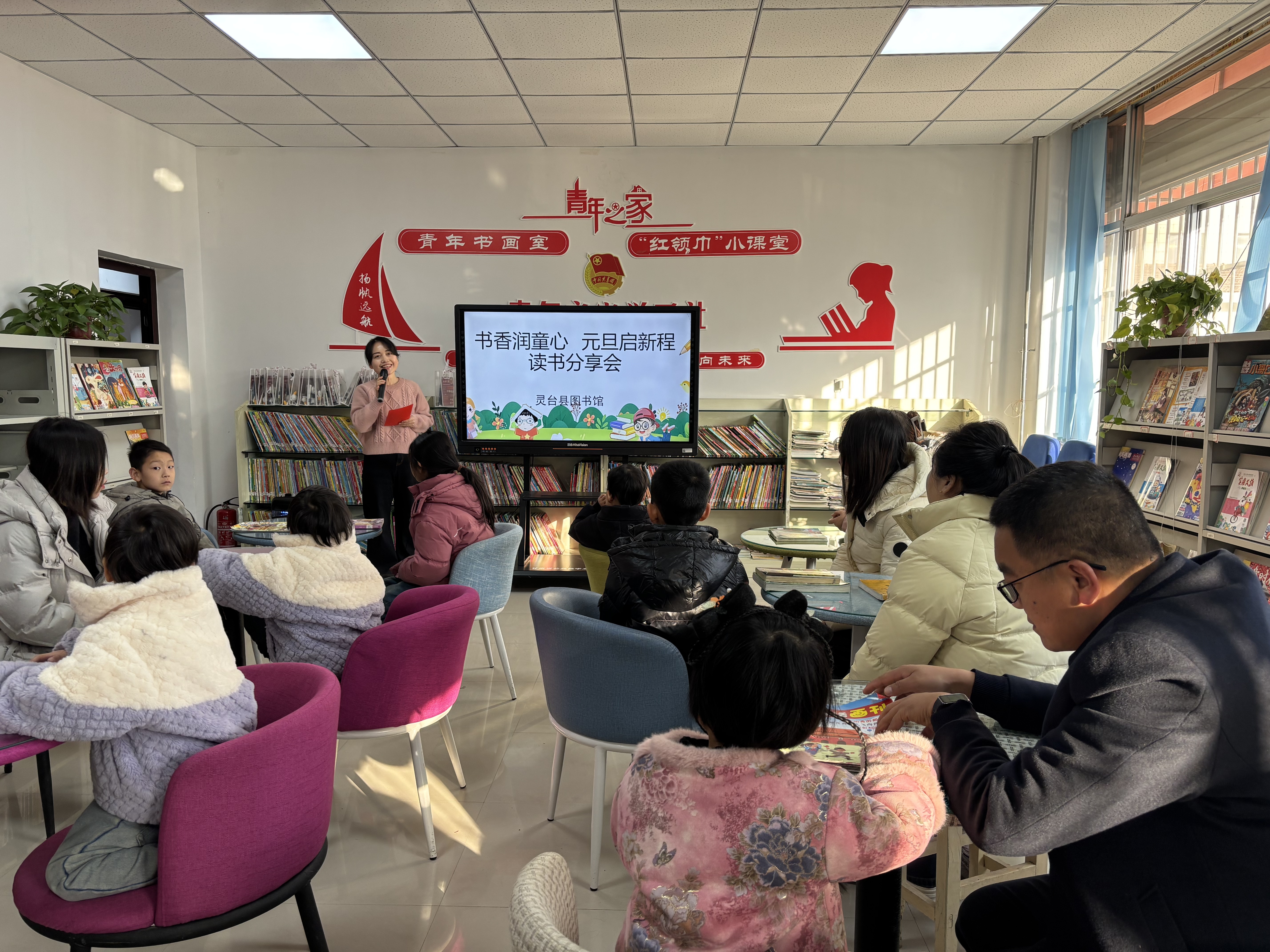 辞旧迎新之际,灵台县图书馆内书香四溢、童趣盎然。为让小读者在阅读中迎接新年,近日,县图书馆举办了“书香润童心,元旦启新程”读书分享会。20组亲子家庭齐聚一堂,通过丰富多彩的阅读活动,共赴一场温馨的新年书香之约。