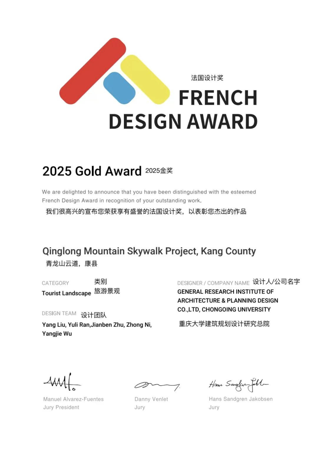奔流新闻讯(记者 刘小雷)近日,从国际设计领域传来喜讯——甘肃康县青龙山云道项目,凭借独特的设计理念、卓越的生态融合性与可持续发展价值,一举斩获2025年法国设计奖金奖。法国设计奖由国际奖项协会IAA发起,是国际设计领域极具影响力的综合性奖项,尤其注重作品在可持续发展方面的突破与贡献。