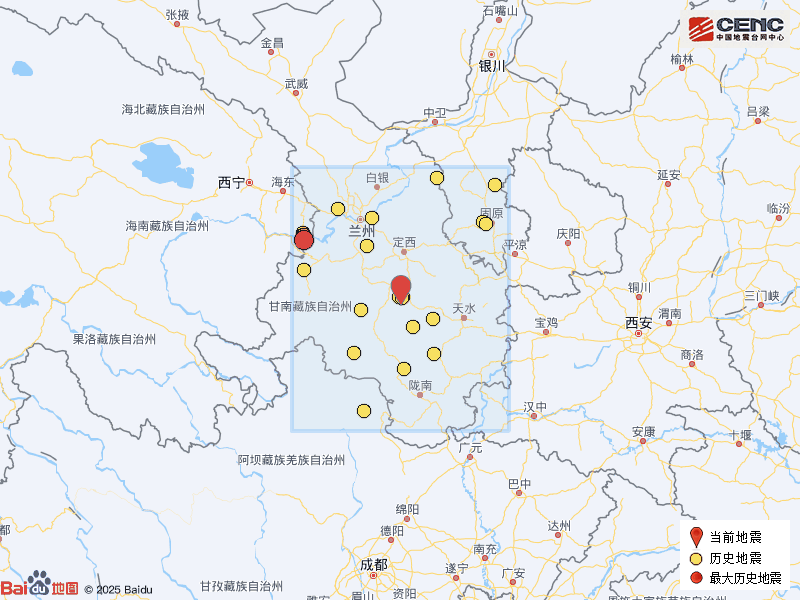 历史地震:根据中国地震台网速报目录,震中周边200公里内近5年来发生3级以上地震共41次,最大地震是2023年12月18日在甘肃临夏州积石山县发生的6.2级地震(距离本次震中186公里),历史地震分布如图。