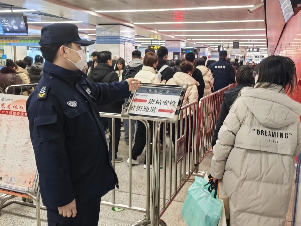 兰州市公安局公交轨道公安局民警和各单位志愿者主动靠前、坚守岗位,协助各站点开展客流引导、便民咨询等服务工作,共同筑牢跨年夜出行安全防线。