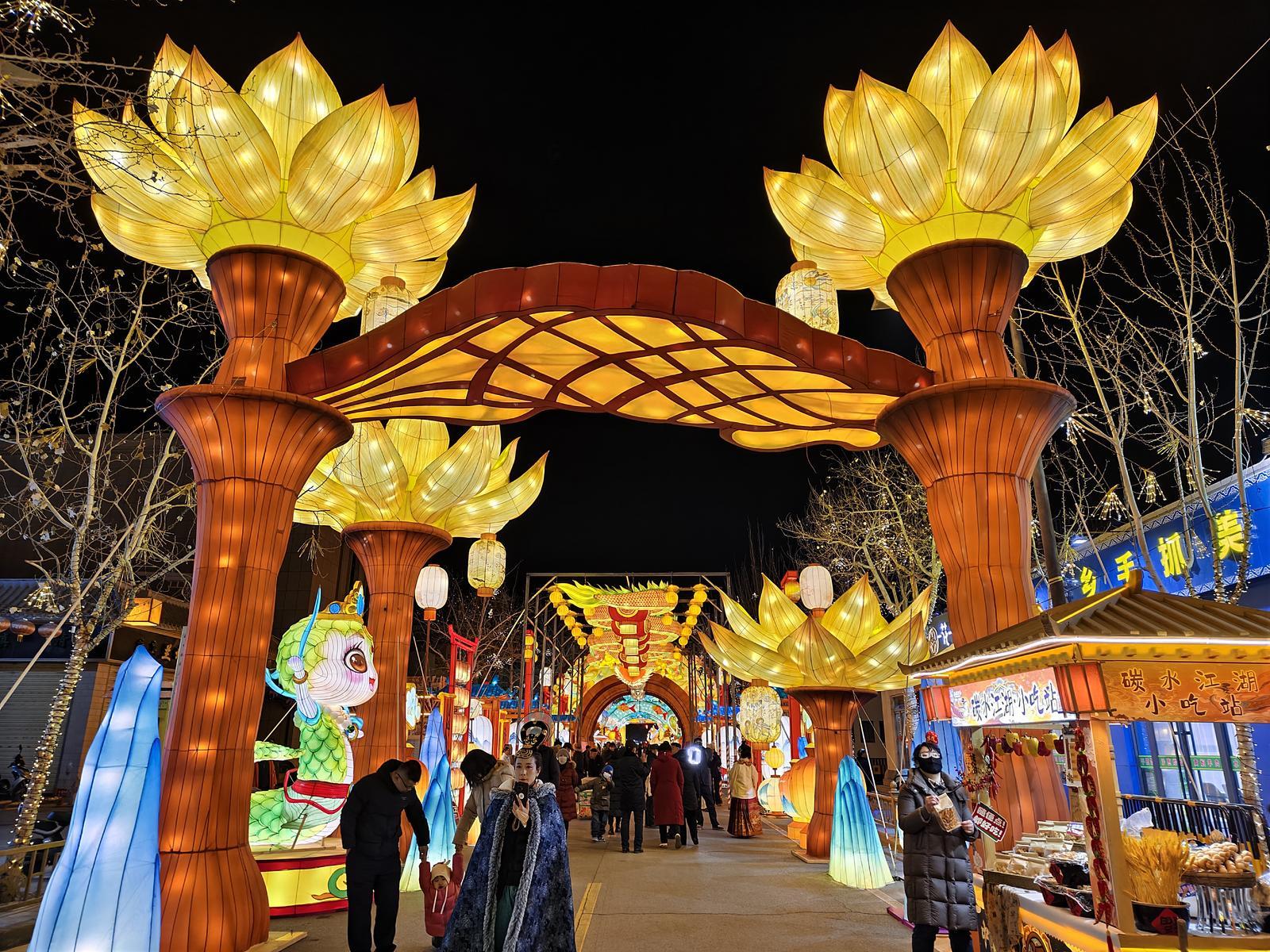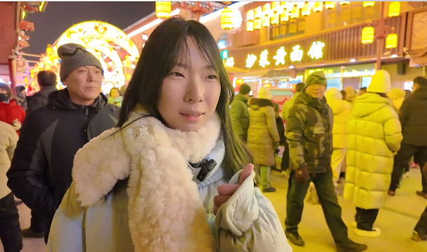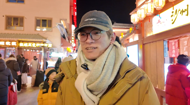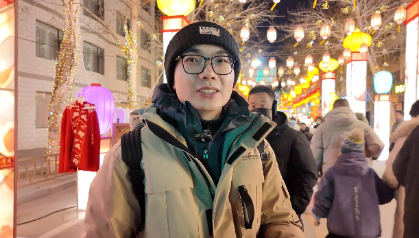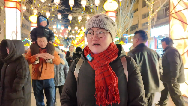 北京游客王正迪说:“晚上这边夜市很热闹,人非常多,非常有这种跨年的氛围。灯展很好,那边有一个非常大的翼马,五颜六色的,感觉就是非常酷炫。”