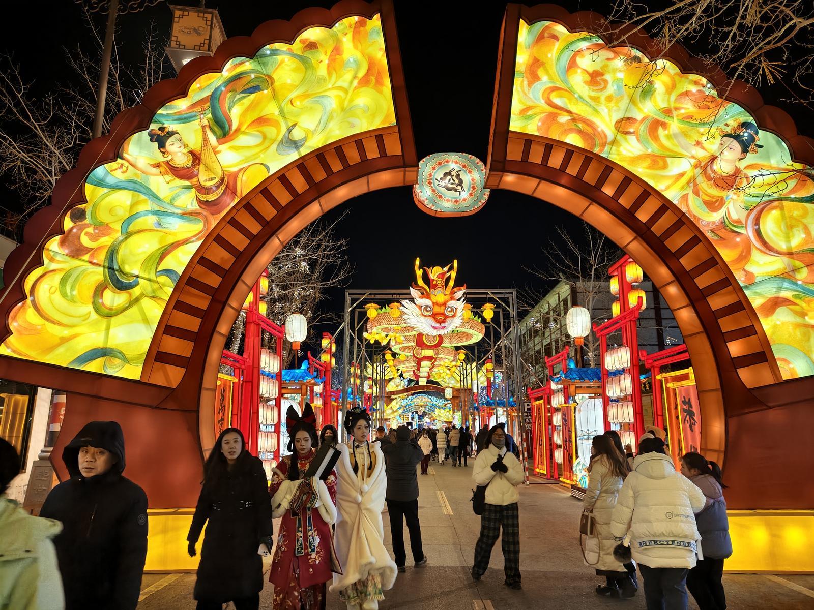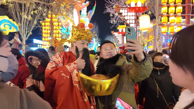 北京游客叶先生说:“敦煌灯会整体的布展,包括造型,我觉得都还比较绚丽,也很吸引人,相对我之前看过的一些灯会,是做的比较好的,过新年的氛围也比较足,我觉得办的特别好。”