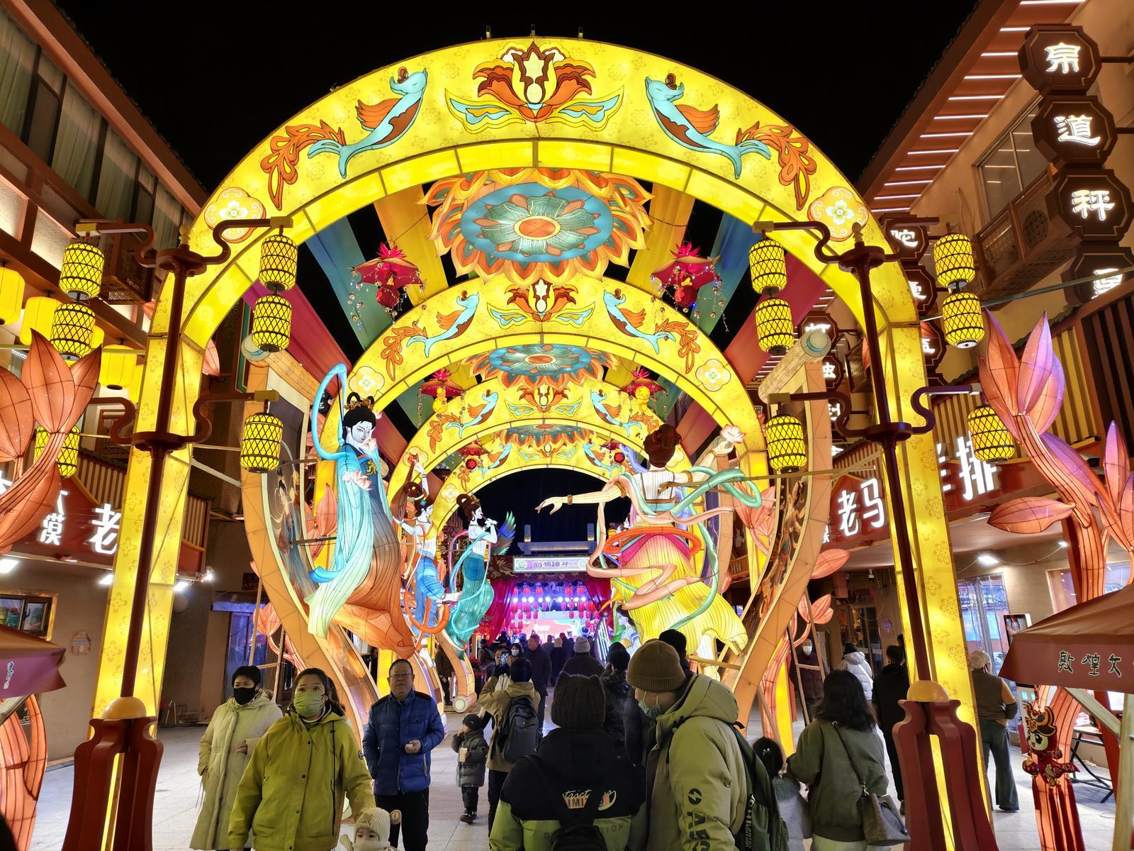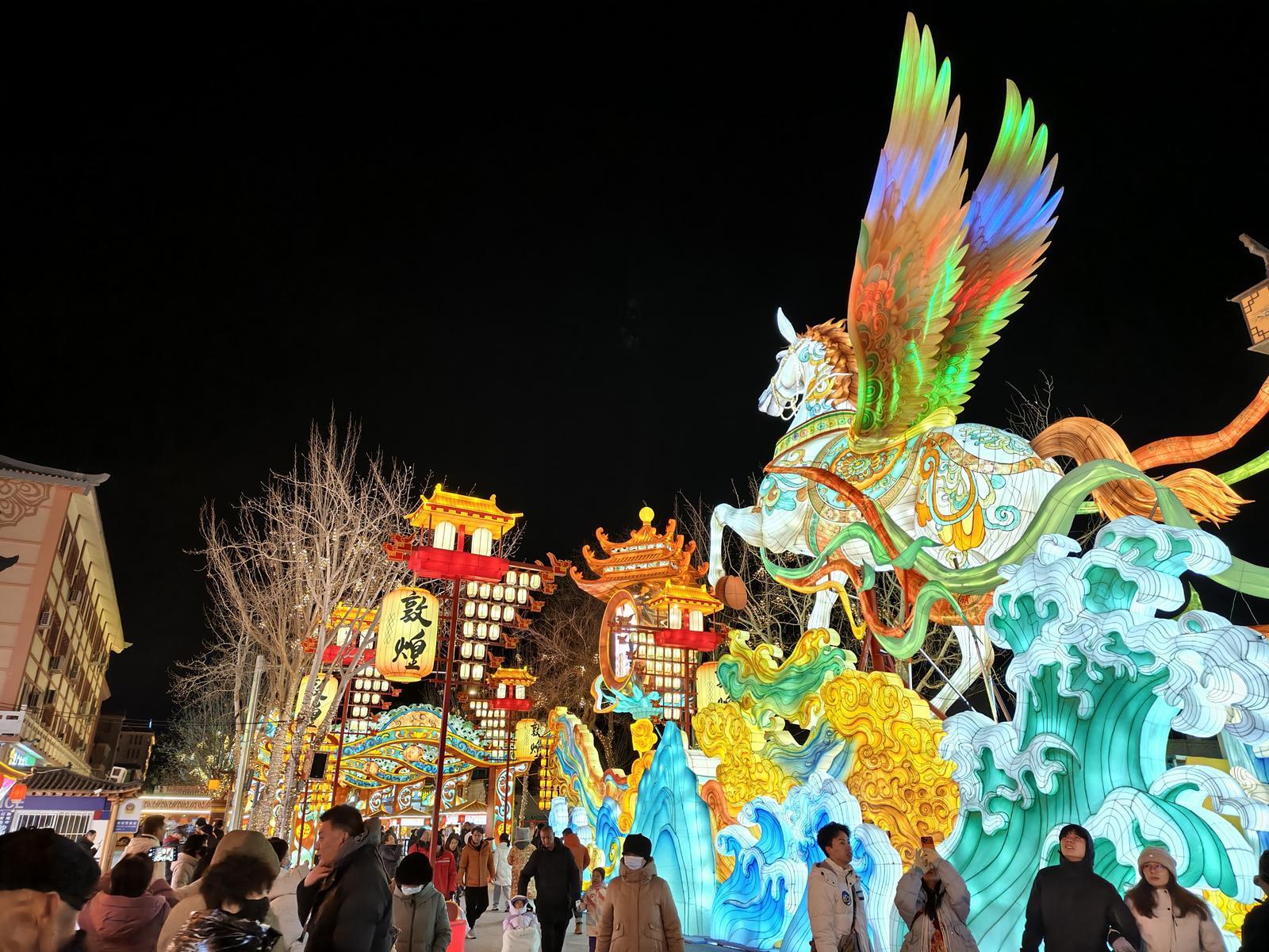 原标题:元旦假期敦煌夜市灯会人气爆棚 文化与年味交融
