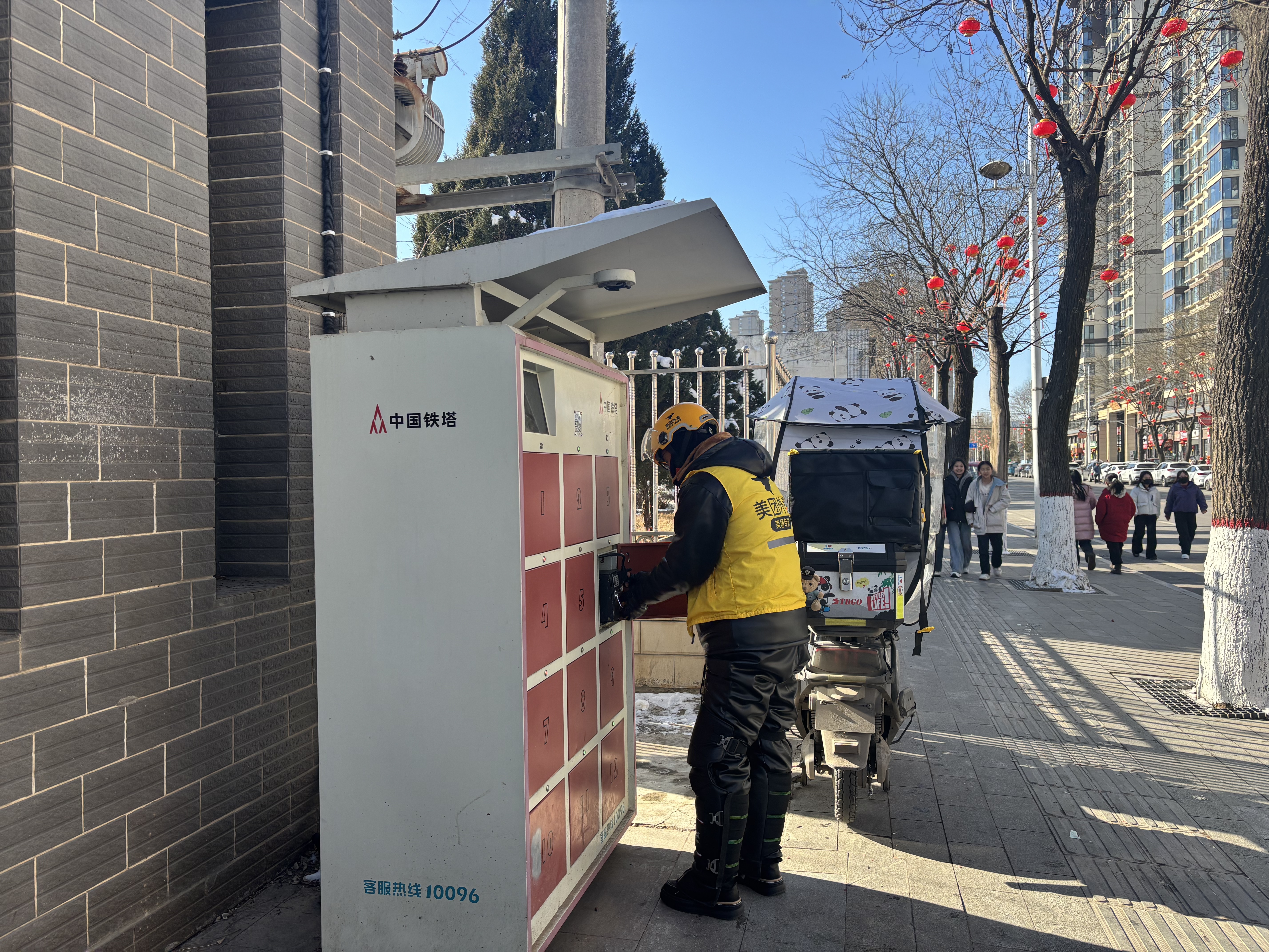 近日,在灵台县城休闲养生公园的工会驿站旁,外卖配送员王鹏辉正熟练地使用新投放的智能换电设备更换电池。扫码、开柜、换电,短短几十秒,满电的电池便让他的配送“座驾”重新“满血复活”。