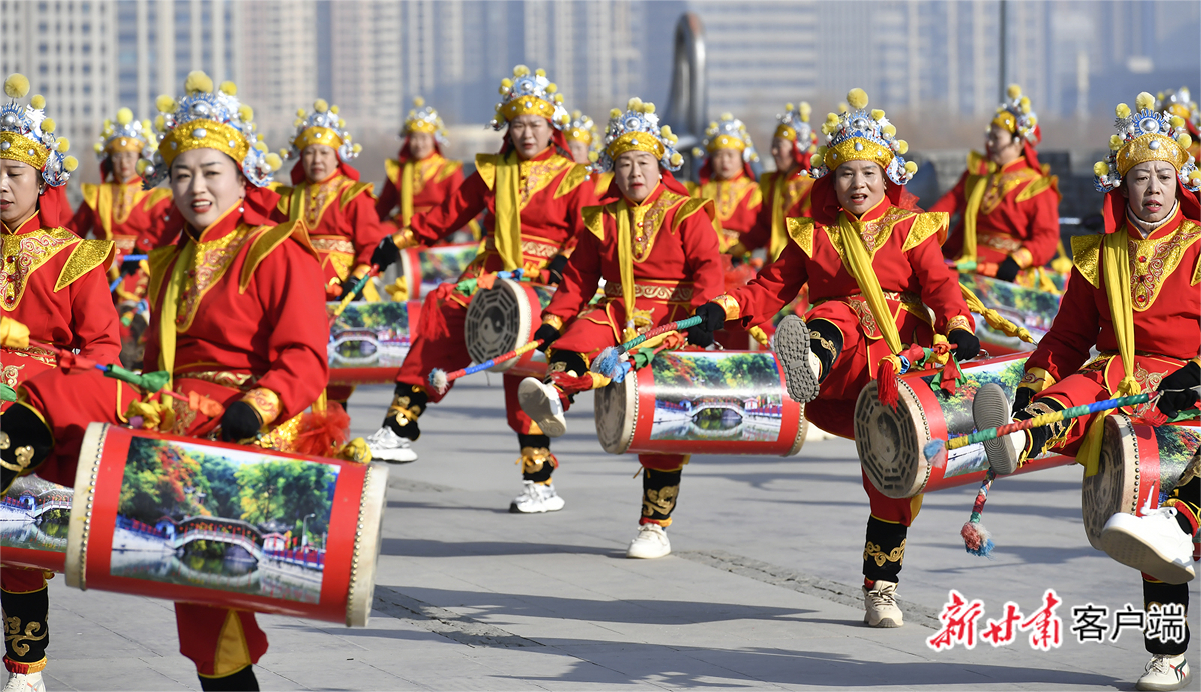 1月8日,兰州黄河楼前鼓声震天、彩旗招展。来自兰州市榆中县兴隆山村女子太平鼓队与红寺村太平鼓队联袂登台,带来一场融合传统技艺与时代创新的表演,献上新年首场非遗盛宴。