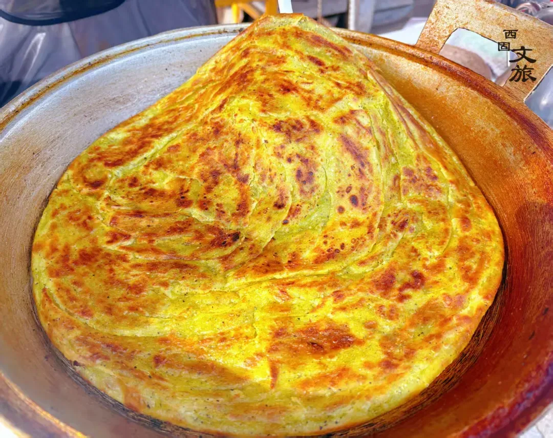 吃完柴火鸡,记得留点肚子,古镇还有别名“破皮袄”的特色小吃非遗美味——油壶喧,油壶喧用苦豆粉、油酥和面粉制成,两面金黄焦脆,轻轻一掰就掉渣,麦香混合着油酥香,越嚼越有滋味,配一杯本地盖碗茶,便能感受最惬意的午后时光。