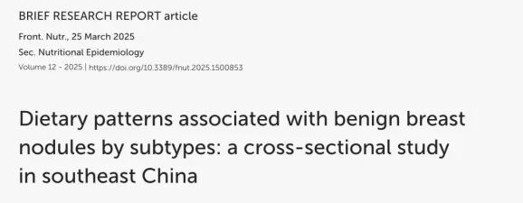 2025年3月,福建医科大学研究人员在《Nutritional Epidemiology》杂志上发表的一篇研究指出不同膳食情况与良性乳腺结节之间可能存在关联。