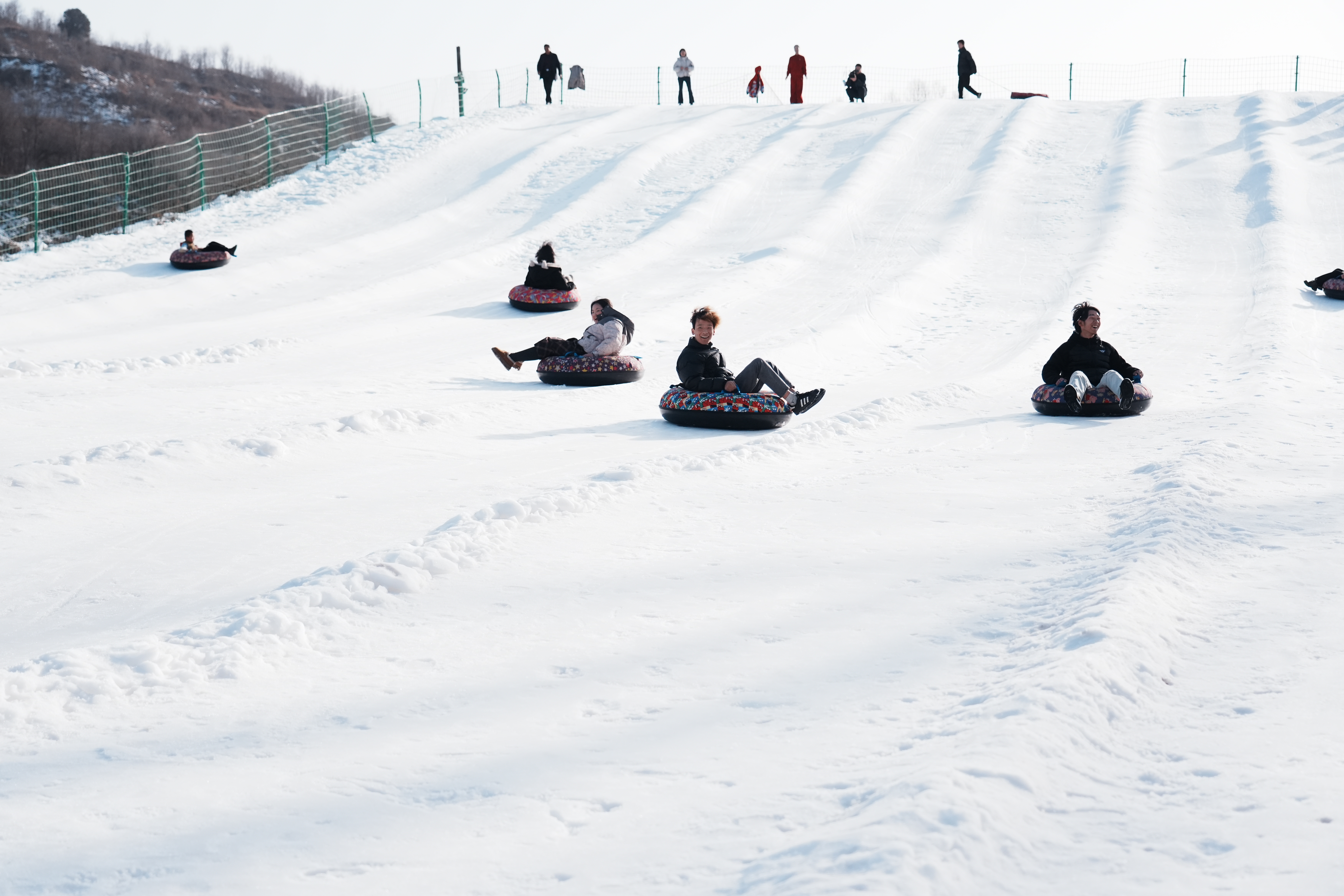 “滑雪场离县城很近,过来的话比较方便,自上周运营以来,每天都有很多人来这里玩耍。”滑雪场工作人员马会慧介绍到,雪场配备了专业造雪设备,即使自然降雪不足也能保证雪质。