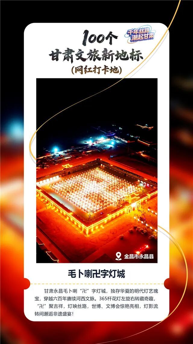 在河西走廊的群山环抱间,金昌市永昌县红山窑镇毛卜喇村藏着一处独一无二的非遗奇观——毛卜喇“卍”字灯城。这座以国家级非遗“永昌‘卍’字灯俗”为核心的文旅地标,将六百年灯艺传承凝于一方灯阵,用流光溢彩的灯火串联起历史文脉与丝路风情,成为甘肃文旅版图中极具辨识度的网红打卡地。当夜幕降临,365盏花灯次第点亮,梵文“卍”字的吉祥寓意与西北民俗的粗犷豪情在此交融,邀您共赴一场跨越时空的文化盛宴。