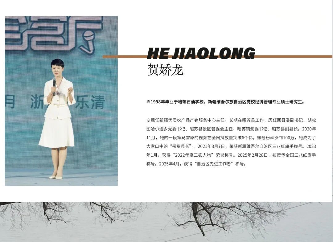 走红之后,贺娇龙没有停步。她把流量转化为助力家乡发展的能量。她开始直播带货,推销新疆的农产品。五年来,她进行了500余场公益直播,个人直播带货销售额约6亿元,所有收入用于公益,累计捐款捐物超过1100万元。她主导打造的“品味新疆”品牌,更是汇聚了466个经营主体、730多款产品,截至2024年已累计带动农产品销售283亿元,实实在在地惠及了成千上万的农户与牧民。