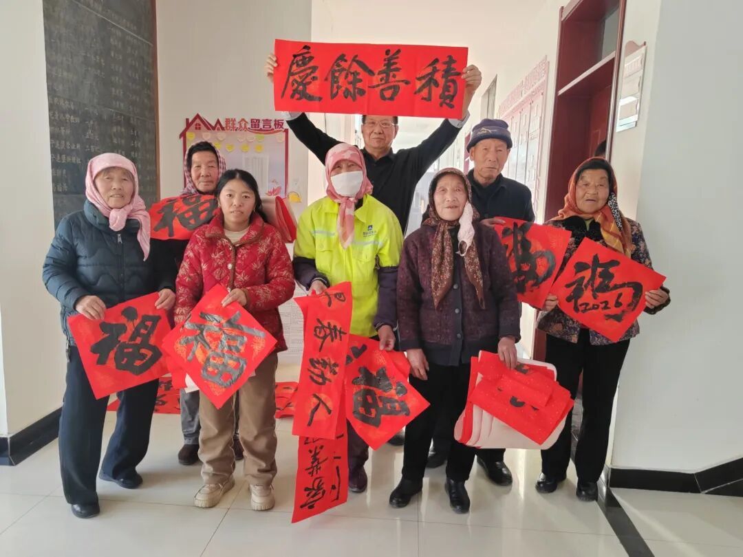 在宁远堡镇龙景村,受邀的域内书法名家们凝神挥毫,笔走龙蛇间,一幅幅寓意吉祥的春联跃然纸上。“骏马奔腾开胜景,春风浩荡展宏图”“福满家门添喜气,春临大地换新颜”等饱含马年美好期许的联句,搭配一个个苍劲有力的“福”字,承载着对新年的憧憬与祝福。群众围站桌旁驻足观赏,目光追随着书法家的笔尖,现场满是墨香与欢声笑语交织的温馨氛围。