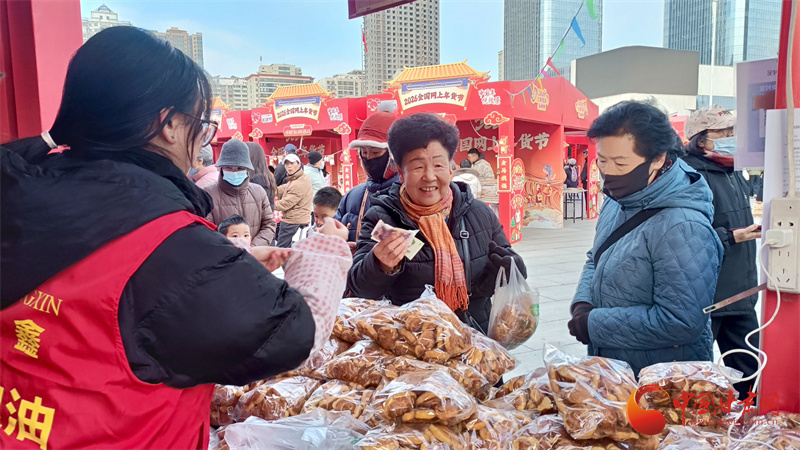 作为年货节的核心主场,东方红广场的8000平方米年货市集早已人头攒动、热闹非凡。130多个展位整齐排列,200多家参展企业带来十万余件商品,甘味特产、非遗文创、陇酒佳酿、中华“老字号”等十大板块琳琅满目,让人目不暇接。