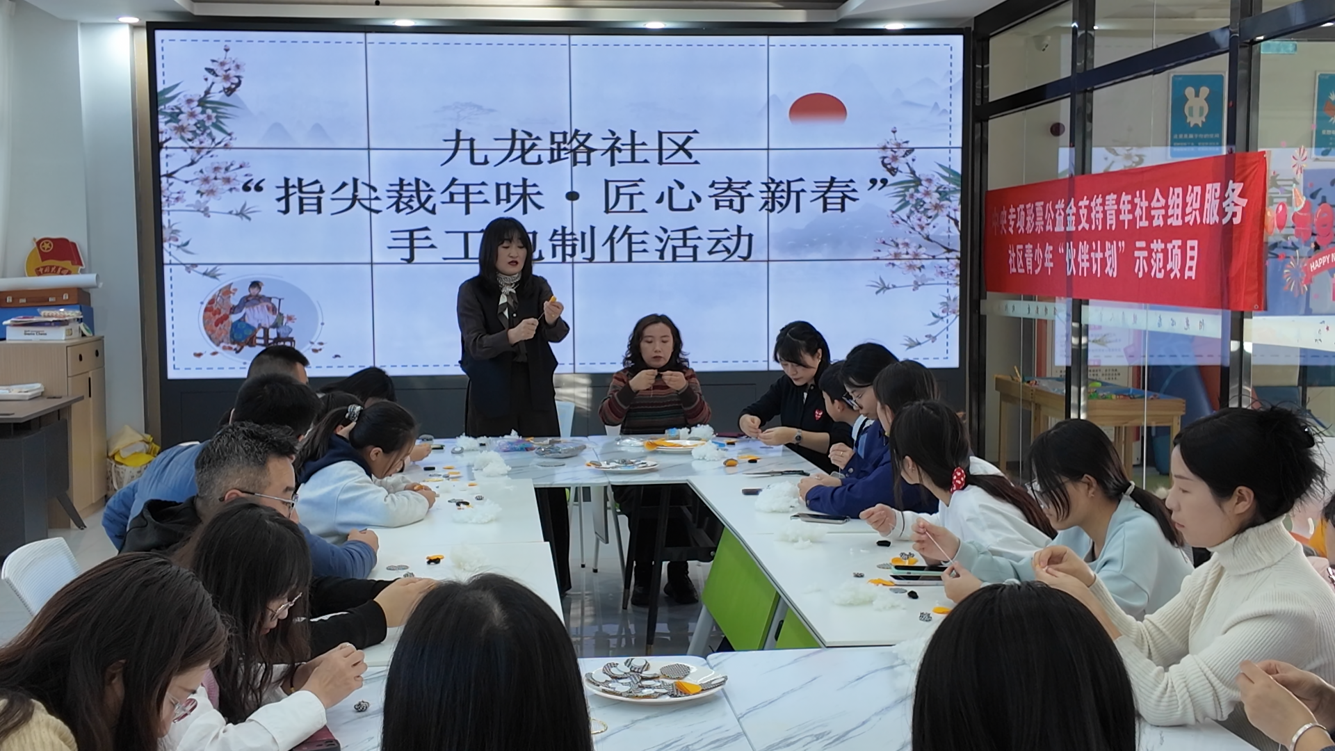 活动现场,社区特别邀请手工达人化身指导老师,为居民们细致讲解制作技巧。考虑到参与居民涵盖成人与儿童,老师分批次开展教学,针对不同年龄层调整操作难度。亲子搭档默契配合,邻里伙伴互帮互助,穿针引线、剪裁粘贴的身影随处可见,欢声笑语回荡在活动现场。大家专注投入,将对新春的期盼与祝福,尽数融入手中的作品里。