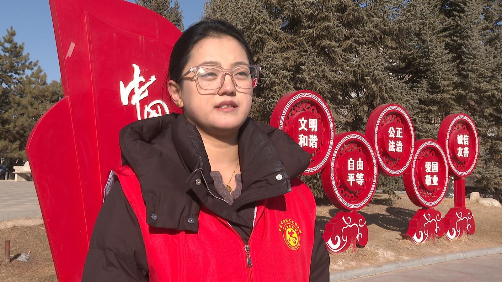 永昌县委宣传部干部张璐:我们组织返乡大学生开展“文明有我 青春添彩”新时代文明实践活动。活动中,青年大学生化身文明志愿者,深入街头巷尾清理城市“牛皮癣”小广告,走街串巷开展文明创建主题宣传,以实际行动引导广大返乡大学生扎根家乡实践、厚植爱乡情怀,为永昌县争创全国县级文明城市注入强劲青春动能。
