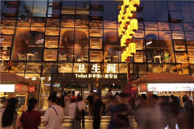 “敦煌净界”坐落于敦煌夜市秦州户商业街天桥向南40米处,是由拥有近30年楼龄的“八景楼”改造而成的城市公共服务空间。其集咨询服务、文化展示、休憩、网红打卡及卫生间功能于一体。