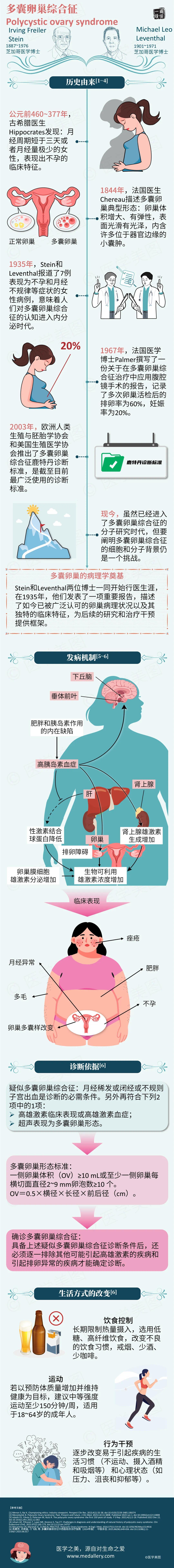 多囊卵巢综合征的研究可追溯至公元前460~377年,古希腊医生Hippocrates已观察到月经异常与不孕的关联,1844年法国医生Chereau描述了其典型卵巢形态,1935年Stein和Leventhal的病例报告意味着人们对多囊卵巢综合征的认知进入内分泌时代。2003年确定鹿特丹诊断标准,这也是目前应用最广泛的诊断依据。现如今虽进入了分子研究时代,但阐明其细胞和分子背景仍是一个挑战。