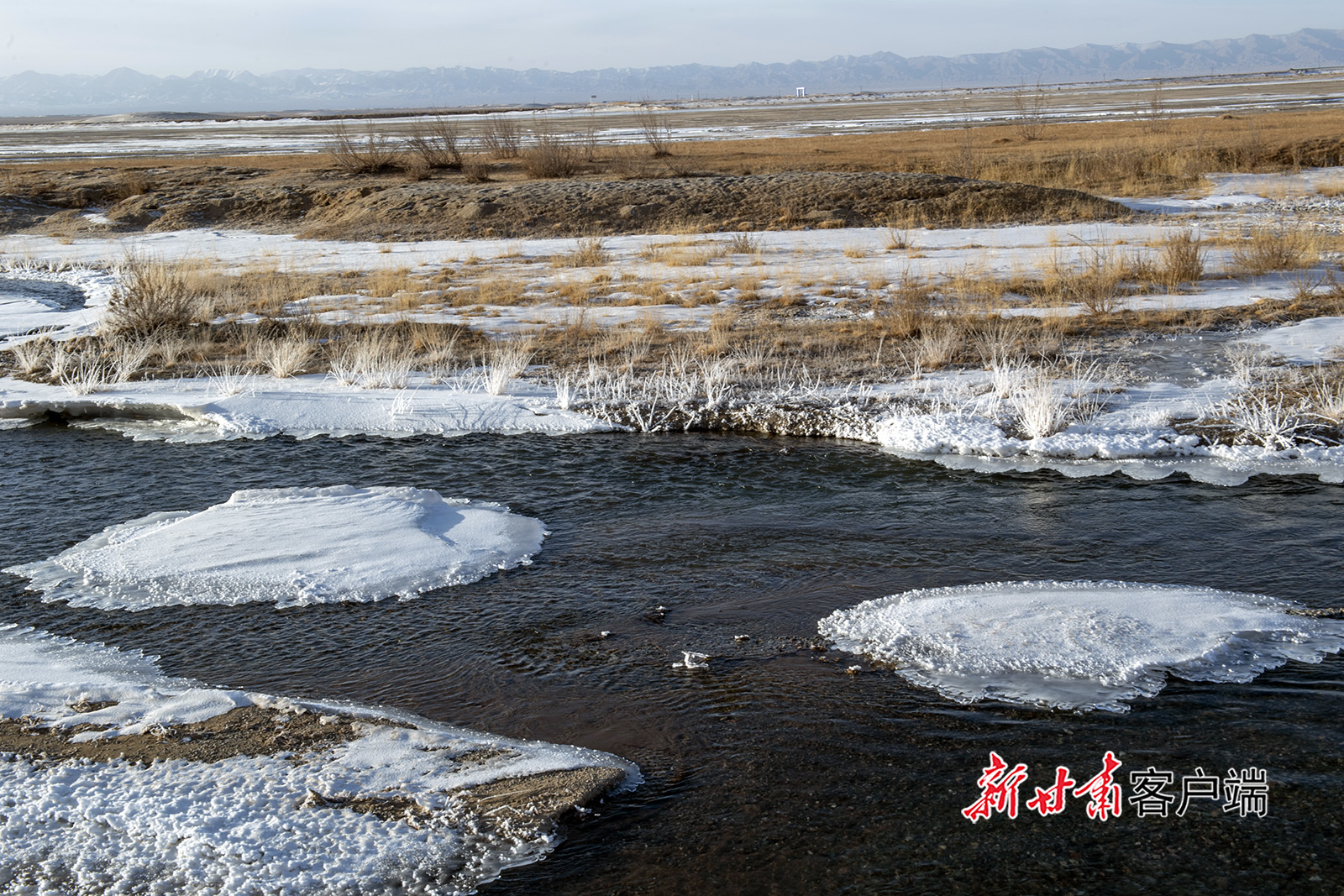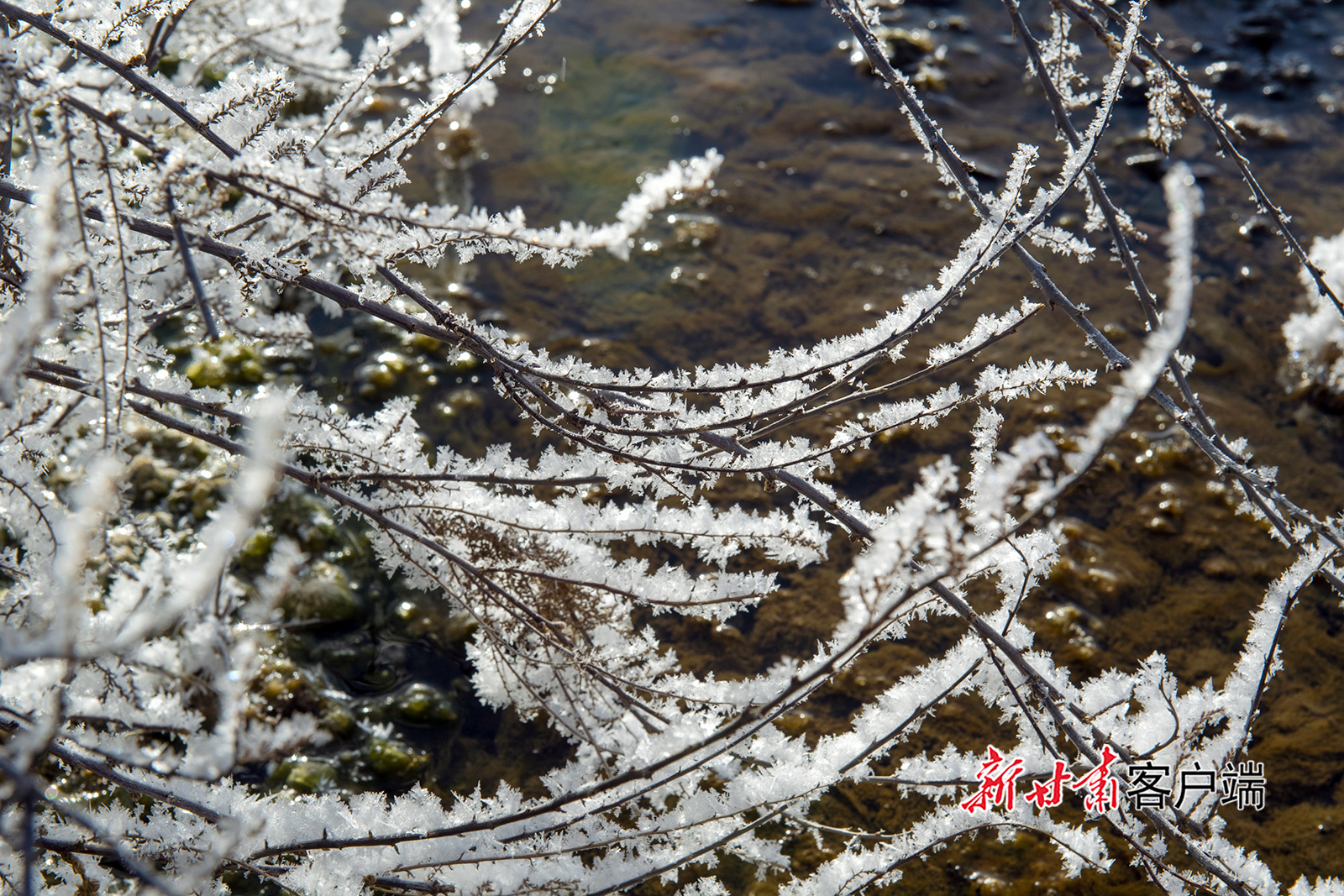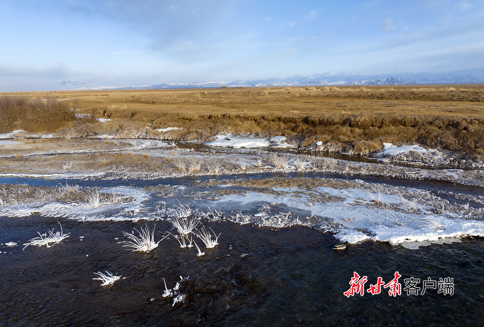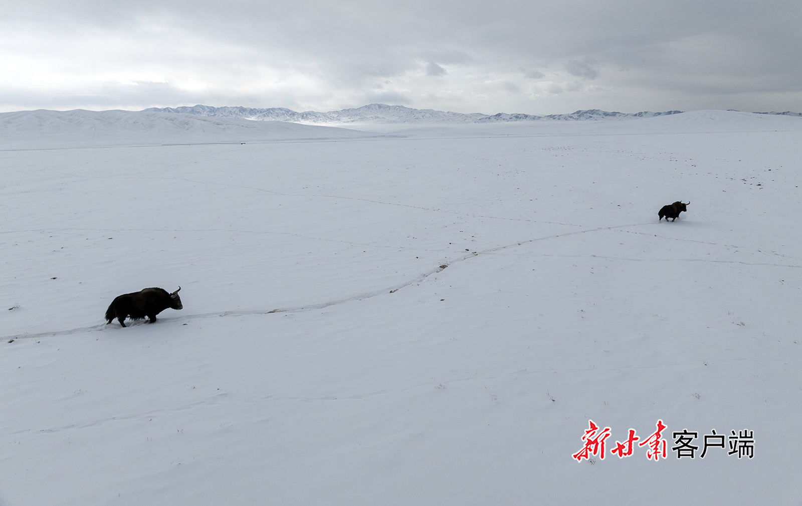 1月19日,阿克塞县阿勒腾乡境内祁连山下白雪皑皑,野牦牛在雪中漫步觅食,清澈的大哈尔腾河岸边的芨芨草、红柳枝上挂满了洁白如玉的冰花,在阳光的照耀下洁净美丽,让冬日的哈尔腾高原美如画卷。