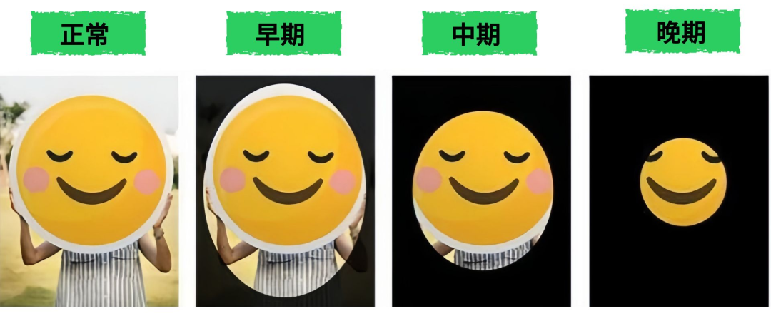 等到晚期时最终变为管状视野,此时人才能通过认知感觉到视力不对劲,可基本已无回天之力。