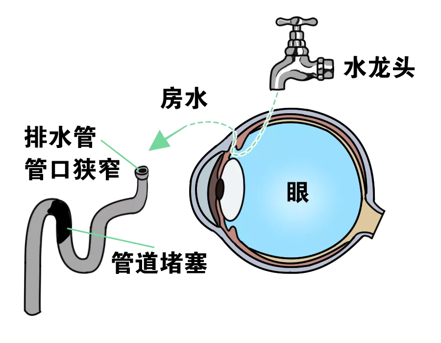 可是当房水生成过多或排水管道闭塞,房水在眼内堆积过多,导致眼睛内的压力升高,视神经受到压迫、损坏,于是视力开始下降。
