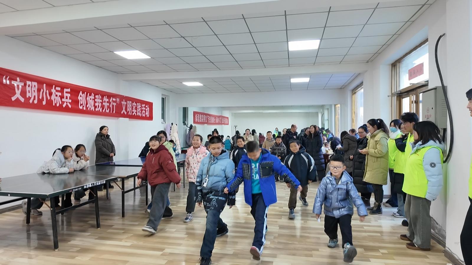 此次活动以“破解家长寒假托管难题、普及文明知识、弘扬文明新风、推动创城理念深入人心”为目标,将创城元素融入沉浸式游戏体验。在“垃圾分类投投乐”现场,孩子们站在纸篓前,手持写有“塑料瓶”“废电池”等字样的纸条选择纸篓投入,每投对一组就响起一阵欢呼。“核心价值观连连看”环节中,小选手们快速将“富”与“强”、“文”与“明”等24字核心价值观关键字卡片配对,让核心价值观在互动中入脑入心。“红绿灯木头人”游戏里,孩子们在玩乐中筑牢交通安全意识。最受欢迎的“文明行为飞行棋”棋盘上,“主动问好,前进2步”“垃圾分类,前进3步”“随地乱扔垃圾,后退1步”“大声喧哗,暂停1轮”的规则设计,则让文明准则变得直观可感。